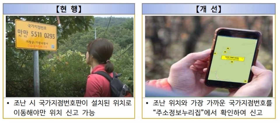 지금까지는 공간정보 보안 등의 사유로 인터넷 지도 등에는 국가지점번호 설치 위치가 공개되지 않아 조난 등 사고 발생 시 신고자의 위치를 정확히 알리기 위해 국가 지점번호판이 설치된 위치를 직접 찾아야 하는 어려움이 있었다.